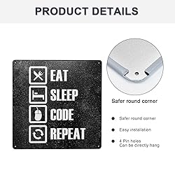 Eat sleep code repeat, funny, programmer Gifts Funny Metal Novelty Sign Metal Retro Wall Decor for Home/Street/Gate/Bars/Restaurants/Cafes/Store Pubs Sign Gift 12 X 12 INCH Metal Sign
