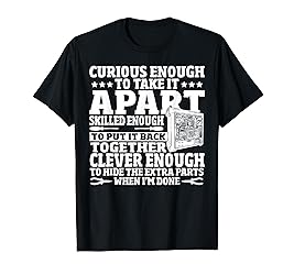 Computer Repair Services design. Computer Repair clothes that says: curious enough to take it apart skilled enough to put it back together clever enough to hide the extra parts when I'm done. Computer repair apparel made for an expert computer support technician, computer fixer or computer whisperer throwing or attending a computer tech party. Lightweight, Classic fit, Double-needle sleeve and bottom hem