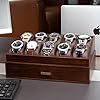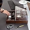 KAMIER Watch Box for Men, 10 Slots Mens Watch Case with Glass Lid, Watch Display Case With Drawer, 2-Layer Watch Holder Organizer, Jewelry and Watch Storage for Men Women, Walnut