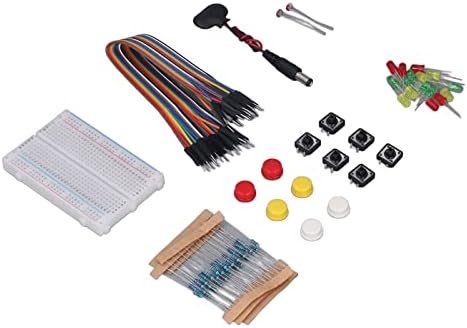 - VARIOUS ACCESSORIES: Including LED, resistors of different resistance, button, male to male cable, 400 hole breadboard and so on.
