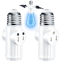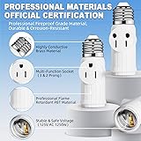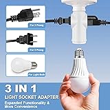 【Multifunctional 3 Prong Light Socket to Plug Adapter】Are you still troubled by the lack of extra sockets available? This 3 prong light socket to plug adapter can help you solve everything! This light socket to plug adapter can meet all your needs from lamp socket to plug adapter, this light socket adapter can support both 3 prong and 2 prong, plus an E26/E27 bulb socket, which can be used more widely and provide more variety and stable electrical contact for your appliances. 【Professional Material, Safe & Durable】. This light socket to plug adapter is made of professional flame retardant PBT material and highly conductive brass, which can withstand high temperature up to 329℉ (165℃). Unlike ordinary plastic materials on the market, our 3 prong light bulb outlet socket adapter are more heat resistant, corrosion resistant and durable, and our light socket adapter is FCC certified to ensure that your product is backed by the highest standards of safety and performance. 【Wide Application, Convenient & Quick】This light socket to plug adapter is widely applicable. Our light socket adapter can be used in warehouse, garage basement, balcony, porch, utility room and other lamp holders for you to add temporary sockets. The light socket adapter is easy and quick to install, no tools are needed, just screw the light socket adapter into the lampholder and let the light socket adapter stick tightly to the socket. (The power should be turned off before use) 【High Quality & Polarized Light Socket Adapter】The 2 plugs of this light socket adapter are polarized to avoid reverse insertion, ensuring safe heat-to-heat, neutral-to-neutral contact between the device and the socket, in line with the house wiring, providing a safe measure to power appliances more securely. 【Electrical Rating】This light bulb outlet socket adapter is powered by 125VAC with a maximum power of 1250 W. (Note: This light socket adapter is not suitable for connecting high power appliances, you need to check if the appliances exceed the rating of this socket before use. This light socket adapter is not suitable for use in wet locations, outdoor please use under a socket with a waterproof lampshade)