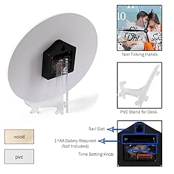Premium Quality Clock: Our wall clock material is pvc; They are non ticking silent design, you can hang it on wall or put it on the desk as a decoration; Each clock will come with a transparent stand; Please note clock no frame and cover Personalized Your Clock: Firstly, choose your clock background; Secondly, upload photo or picture; Thirdly, choose favorite dial plate (required); Fourthly, Choose font and its color, then enter your text How to Use: You just need to prepare one aa battery and one hook (Not including); Put in the battery, set the time, the clock’s hands will move normally; Clock will not make noise, suitable for kitchen, bathroom, dining room, office or living room Unique Clock for Your Family: You can customize a special clock by upload your pictures with family; It is the nice idea that can save the memories with your mother, father, lover, couples; It is a surprise clock in the wedding, birthday, festival, etc Warm Tips: Our custom clock’s hands have a little soft, so if the hands are accidentally bent, try to adjust it to a horizontal position by hand so that the clock hands do not cross each other, although this is less likely