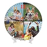 - Personalized Clock Custom Photo Wall Clocks Customizable with Your Pictures Text 10 Inch Non Ticking Silent Round Decoration for Living Room Kitchen Bathroom Home Office Unique Wedding Decor, Pvc Hd printing, it will not fade Including 1 x wall clock and 1 x stand Unique for your family, lover It is powered by one aa battery (Not including)