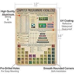 NEGLAI Computer Programming Knowledge Metal Signs Poster, Vintage Wall Decor Farmhouse Decorations 16x12 Inches