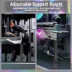 Graphics Card Support -- This GPU support bracket is to provide support for the end of the graphics card, to keep the graphics card in a parallel state. If you have a big and heavy graphics card, you might need more GPU support. All-aluminum metal material-- Updated graphic card support brace, this GPU stand is made of quality aluminum metal material, provides strong and long-lasting support. Magnet Design-- The magnet hidden in the GPU support bracket base is designed for easy installation and more stable standing in the chassis. No slip when using this GUP stand. Adjustable Height Graphic Card Support Brace -- Simply twist the nut of graphic card support holder to adjust height as you need, no need other tools. This GPU support height from 4.53 inch to 8.27 inch (11.5-21cm). Adjustable height graphics card anti sag bracket make it wide compatible with many chassis configurations. Satisfaction And Guaranteed-- If for whatever reason you are not absolutely satisfied by our GPU support bracket, we will refund or replace new graphics card support, no question asked! All question will be respond.