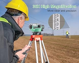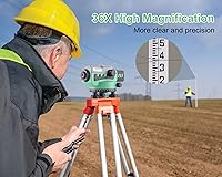 Professional Transit Level for Builders:KEZERS KL-36X automatic optical level featuring a powerful 36X magnification lens and 36mm large aperture,these makes you can easily working with it within a range of 393Ft.The machine offers excellent accuracy of 1/16" at 100Ft with a standard deviation of 1.0 mm per kilometer (double run levelling). Self-Leveling Optical level:This level has a circular bubble with a 90 degree bubble mirror, ±0.5″ auto-leveling, the top sight can quickly align the level bar and correct, the user can adjust the focus knob to quickly focus and start measuring.It is ready to use right out of the box with no assembly needed. Easy to set up and Alignment:Optical levels offer horizontal and vertical crosshairs and lines of sight to assess level, alignment, and distance. The 90-degree prism on the spherical bubble makes setup and alignment quick and simple. Various Measurement Function:The automatic optical level can be used by builders, contractors, engineers, land surveyors, or architects to measure height, distance, and angles. It can be utilized for building homes, installing infrastructure, building roads, making bridge assumptions, building railroads, and building tunnels. Package and Customer Service:You will receive 1 x KEZERS KL-36X Transit Level, 1 x Adjusting Pin, 1 x Hexagonal Wrench, 1 x Plumb Bob, 1 x Hard Carrying Case, 1 x User Manual.