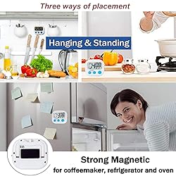 【Package Includes】: You will get 6pcs different colors magnet digital timer, it comes with battery you not need buy battery Lightweight and fashion, very convenient to carry and use.etc 【Large LCD Screen and Big Digits】 : Kyzistn digital kitchen timer with LCD screen, size of 2.56 x 1.34 inch just a glance from across the room and you can easily read the timer display. Ideal for those without the best eyesight. 【Super Easy to Use】 :The digital kitchen timer clock can both count up and count down in a range from 1 second to 99 minutes, press both MIN & SEC button to reset to 00:00, then start timing. Kids can easily make Countdown timer work too! meet the need of home perfectly 【Magnetic Back Design】: Cooking timer with magnetic back, retractable stand and hook for hanging, can be positioned in variety of locations, like table, refrigerator, dry erase board and wall hooks. with Magnetic back can help you easily suck it on the coffeemaker, oven refrigerator or other magnetic objects.Meet your different needs 【Multi-function】: The timer is perfect for kitchen & dining, exam rooms,BBQ grilling, games, classroom, also can use for a reminder for take medicine also perfect for homework, exercise timer, gym workout timer, cooking timer, egg timer, turkey timer, sports timer, game timer, and classroom timing