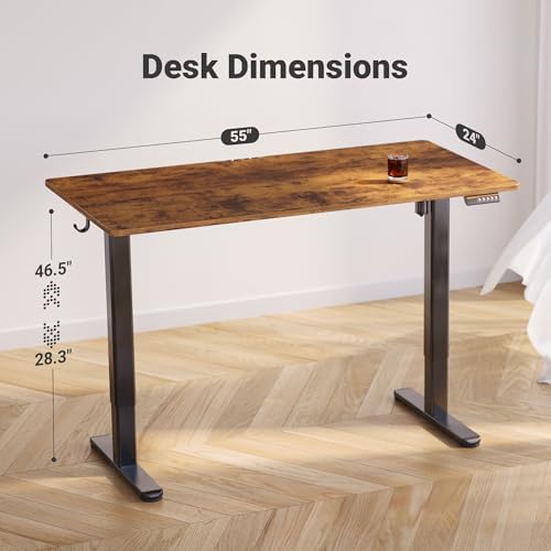 Claiks Electric Standing Desk, Adjustable Height Stand up Desk, 55x24 Inches Sit Stand Home Office Desk with Splice Board, Black Frame/Rustic Brown Top