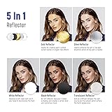 【Achieve Five Light Effects】This 5-in-1 reflector includes a round translucent diffuser panel and a reversible cover with four reflective surfaces, white, black, gold and silver, ideal for bouncing lights in different tones. 【Two Handles】Two handles allow you to hold the reflector with both hands and position it freely to get the appropriate lighting for your shots. 【3/8" Thread】One of the handles has a 3/8" threaded hole for mounting accessories or mounting brackets. You can also use the reflector on a tripod for lighting or on a C stand for hands-free use of the reflector. 【Exceptional build quality】Made of durable steel, the frame can be bent and twisted repeatedly without deformation. Soft reflective fabric evenly bounces light for vivid portraits and photos. 【Foldable and Easy to Carry】Designed for studio or outdoor photography, this reflector panel can fold to take up less space and stow inside the zip bag for easy storage and transport.