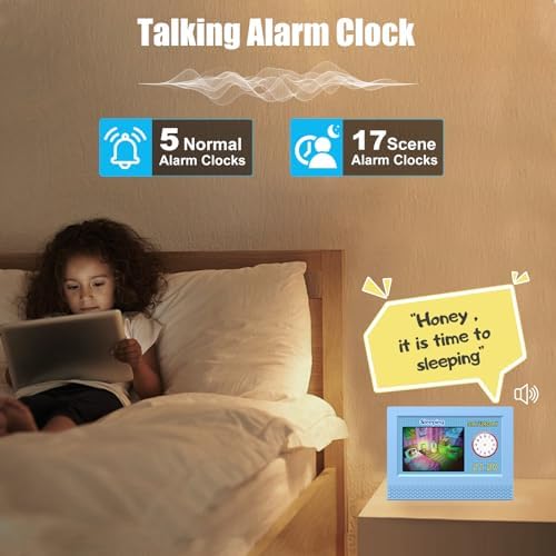 • ✨【Interesting Digital Alarm Clock】-- The schedule clock will help you and your children set 5 daily alarm clocks and 12 specific scene alarm clocks. When the alarm clock rings, the clock will display cartoon scene images and specific voice broadcasts, letting children know what to do at the moment What, form a good habit.