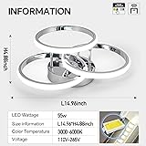 【Dimming with Remote】Adjustable color (daylight mode, night light mode), brightness (5%-100%), lumen and the color temperature of the light (warm, white, neutral), which can be controlled by remote, the irradiation area is 10 to 15 square meters, and the avera ge life expectancy is 50,000 hours. Maximum power: 55W, voltage: 110V, lumens: over 5600LM. 【High CRI & Eye Protection】Silver circle ceiling lamp CRI index up to 90, which simulates natural light to the greatest extent and restores the truest colors. Advanced LED lighting can prevent stroboscopic. The specially treated acrylic lampshade can soften the light to a greater degree. This protects you and your child's eyes from harsh light. No matter day or night, your home is still full of colors. 【Perfect Modern Stlye】Modern 3-Layer circle design will never outdated ,the led ceiling light non-fading, corrosion-resistant, non-cracking, easy to clean, and elegant and creative design, adding more fashion elements to your house. 【Easy to Install & Widely Used】The internal wiring of the black Dimmable semi flush mount ceiling light has been completed. You only need to splice the lamp body and fix it on the ceiling. It is not only a lighting fixture, but also a stylish artwork to decorate your hallways, bathroom, cloakroom, stairs, entrances,etc. 【Customer Service】Please check the size to ensure this light will fit your ceiling before order. If you have any problems on this smart ceiling light fixture, please do not hesitate to contact us, we will try the best to help you.