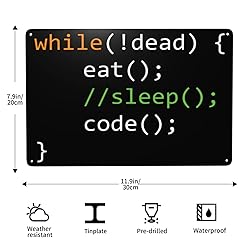 - Funny Computer Science Programmer Eat Sleep Code Our metal signs are made to look bright and vibrant. This high-quality wall art decor allows you decorate in your own unique style! Your family, colleague and friends will love the look of our tin signs. Funny metal sign is a perfect gift for all occasions, Made with High-quality METAL, These metal signs are Waterproof, Durable, Colorfast and Easy to clean. Our Funny tin signs will delight your family, colleagues and friends. This funny metal tin sign comes with 4 pre-drilled holes (screws or nails not included) for easy hanging, you can also use sticky hooks, mounting tape or wire to install. The man cave sign is the perfect addition to your home bar area decor, adding a sense of humor and joy to your patio, basement, garage, office, man cave bar. Bar sign are printed by waterproof high-definition digital printing ink, It takes more genuinely vintage impressions. It will keep beautiful colors, no matter the sun & rain, or other extreme weather.