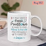 - Personalized Nurse Practitioner Cup with Name, A Truly Nurse Practitioner Mug, Future Nurse Practitioner Cup, NP Ceramic Cups, Retirement Gifts for Nurse Practitioner, White Tea Cup 11oz, 15oz High Quality Mug: All of our coffee mugs are made of professional grade ceramic, ensuring they are tested for durability and sharpness on each product. Microwave and dishwasher safe for your convenience. Design professionally printed on both sides of the mug so that everyone can see the awesome graphic whether you are right or left -handed. Employing the latest in print technology that the print will not easily peel or fade. Easy To Use: The C-handle coffee cup is nice and large as well, making it easy to grip and use. Perfect for daily home use, travel or more at the office. Make A Best Mug Gift: If you are looking for Birthday gifts or Holiday gifts, YOU ARE IN THE RIGHT STORE. This novelty white A Truly Nurse Practitioner coffee mug cup is perfect mug gift for anyone on any occasion. These coffee mugs make unique and novelty mug gifts for Nurse Practitioner, Nurse Preceptor, Medical Assistant, Future Nurse Practitioner, Nursing Student, Women or your loved ones. Perfectly suitable for many occasions including: Christmas, Birthday, Retirement, Graduation, Thank You or any occasion. ☞ If you have any questions or concerns about the purchase, please do not hesitate to contact us.