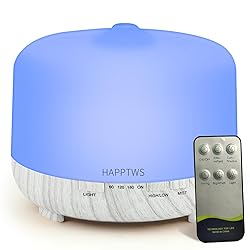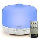 HAPPTWS 500ml Essential Oil Diffuser - Cold Mist humidifier with 4 timers and 7 Color Settings, no Water auto Shut Off, with Remote Control, Suitable for Room/Yoga Room/Office (White)