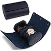 2 Slots Cylindrical Watch Case, Watch Roll Travel Case Vintage Watch Box for Men and Women - Blue Upgrade Version