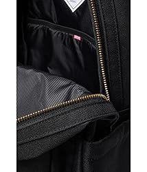 Innovative Material: Made with 600D Fabric and a tonal stripe liner, both crafted from 100% recycled polyester, combining sustainability with durability. Padded floating sleeve fits a 13"/14" laptop Comfortable & Versatile Carrying: Equipped with EVA-padded shoulder straps for comfort and dual top carrying handles for grab-and-go convenience, making it easy to carry in various situations. Organized Storage: Includes a water bottle pocket that expands to fit different sizes, a side storage sleeve for quick-reach items, and a front pocket organizer with a key clip to keep all your essentials neatly in place. Signature Details: Showcases a Herschel Supply DNA shoulder tab and Put Yourself Out There internal label, along with an internal Herschel Supply stripe DNA tab, adding unique style and personal touch to your eco-conscious choice.