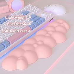 【3 in 1 Cloud Computer Accessories】15.2*4.4*1.2 inch keyboard wrist pad and 6.1*2.9*1 inch mouse wrist pad and 5.1*3.9 inch Leather Cup Coaster fits most computers or notebooks.It improve hand and wrist posture,avoid joint and wrist problems and release your elbows and shoulder stress for long hours of use on the computer. 【High-density Premium Memory Foam】The cloud wrist rest for computer keyboard and mouse is made of comfortable memory foam and the surface is made of soft & Smooth & breathable Material ,The cloud palm rest and keyboard pad which rebound is fast and the texture is soft,but the foam is durable and won't lose its shape over time like a gel. 【Non-slip Silicone Base Desk Accessories】Non-skid Rubberbase provides heavy grip preventing sliding or unwanted movement for Keyboard and mouse pads, keep the wrist support stay in place on desk surfaces.Double Sticking and Press handing for edge to supply flat and smooth edge and will not roll up nor split open, so you can focus on your work or gaming. 【Unique Cloud Shape Design】This cloud wrist rest gaming mouse pad is an essential office desk accessories.The cloud-shaped design of the keyboard wrist rest fits your hand better.Keep your wrists in a straight line,not at an angle to the keyboard.The new concave-convex design allows the air to circulate more,avoiding long-term stuffy use and keeping the wrist comfortable and dry.Our design has a simple and happy soul,looks very cute and stylish,and is a perfect work and study companion. 【Wide Application & Practical】This new keyboard pad mouse cloud palm rest can help you relax while studying,working,playing games.Includes1x keyboard wrist rest,1 x mouse wrist support,1 x cup coaster.It is an essential home office accessory for anyone who uses a computer frequently.Suitable for office workers,gamers,writers,students,editorial designers,etc.suitable for offices, homes,schools,etc.
