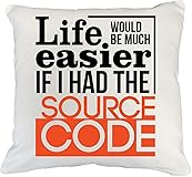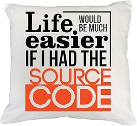 Life Would Be Much Easier If I Had The Source Code Programming Humor Pillow Cover For A Programmer, IT Computer Scientist, Web Developer, And Software Engineer 18x18 IN White Linen Throw Pillow