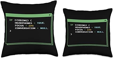 Programming Coding Gift For A Programmer Coder If Coding Headphones True Focus 100 Conversation Coder Throw Pillow, 18x18, Multicolor