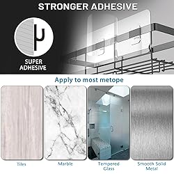 Stainless Steel 【Great Shower Organizer Set】This Hanging furniture shower caddy can help you better organize your bathroom necessities. It is suitable for bathrooms, kitchens, Rv, living rooms and bedrooms, with the soap dish to make your family space use to the extreme. The large storage capacity allows you to store more items, and the fence prevents items from falling. 【304 Stainless Steel】Our shower shelves are made of 100% stainless steel, rust-proof and sturdy. The spacer design at the bottom can help drain and dry quickly, avoiding harmful substances in humid environments. It is an ideal choice for supplementing your bathroom. 【Stronger Adhesive】The upgraded version of the transparent non-marking adhesive provides you with stronger stability. It can be installed without drilling. The load-bearing capacity can reach up to 40lb, which is twice that of other products on the market. Since it won't fall from your wall, you don't have to worry about the loss caused by the shower organizer falling after installation. 【Applicable to More Walls】You can install it on any smooth wall (Paint not included), and it works on almost any bathroom wall, so you can buy with confidence without worrying about inapplicability.