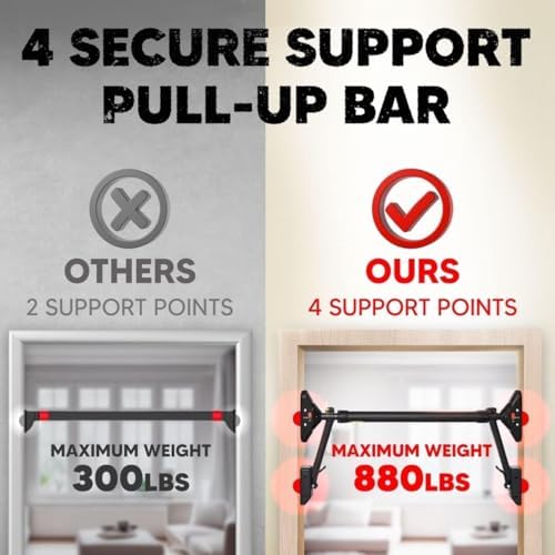 - Maximum weight 880lbs – with a maximum weight capacity of 880lbs, our horizontal bar can support your weight and provide a safe and stable workout experience. The no-slip grip foam handles ensure that you maintain a strong hold during your exercises, reducing the risk of injury.