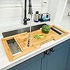 - Bountiful Benefits of Bamboo: Over sink cutting board is nonporous and resists liquid so sink cutting board won't bend, warp, crack, absorb odor, or stain. This sink cover cutting board board is extremely strong and resists knife scarring. Wooden cutting boards for kitchen A truly low maintenance wood ,kitchen sink cutting board for a user-friendly experience