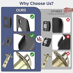 【Premium Quality Door Lock】Bedroom black door handles are made of high quality zinc alloy, Ensures that the entire matte black door knobs for bedrooms will not rust or corrode in high humidity environments; Solid column security bolt for anti-sawing protection; The smooth black matte finish has an elegant look, works perfectly with all different colors of doors and lighting conditions 【Privacy Interior Door Knob】It's a lockset for bedroom door with ANSI-3 standards that don't need keys. The privacy door knobs can be locked by twisting the button inside and opened outside in case of emergency with a flat-tipped tool such as a screwdriver or coin, ideal for use with bedrooms, bathrooms or offices, etc. 【No Shedding and Noiseless】The surface of our upgraded interior door knobs adopts electroplating process, which has more adhesion than the powder coated or painted surface of other products, will not fall off. In addition, the interior door knobs twist does not make a squeaking sound, almost 0 noise 【Easy Installation of Handlesets】The package comes with all the accessories as well as the punching instructions,you only need a screwdriver to quickly complete the installation. Note: Each of handle is packaged separately to avoid scratches caused by collisions during transit(the black door lever fits 1.38" to 1.78" doors, and the latch plate is unremovable). Please CHECK the size of the handle and all accessories carefully before purchasing 【Satisfaction Guaranteed】Please check all the accessories in the package before installation, if there is any problem with the door lock for home improvement, RESPONSE IN 24 HOURS, we will bring you a satisfactory warranty