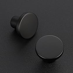 - Measurement: Single Hole Cabinet Knob, Top Diameter: 1.18inch(30mm); Base Diameter: 0.5in (15mm); Height: 0.86 inch(22mm). Modern Round Design : The simple and modern design of the black round drawer knobs for cabinets is ideal for different styles of cabinets: kitchen cabinets, dresser drawer, bathroom drawers, bedroom cabinets door, etc. These knobs hardware will give your cabinets a clean and finished look. Study and Durable : These single hole black cabinet knobs are made of high-quality, strong and durable Zinc Alloy. The deep threaded design makes the matte black cabinet knobs difficult to loosen and therefore fall off. Lead-free Material: The lead-free material is safe for children. You can put the cabinet door knobs anywhere your child can reach without any worries. Easy to Install : Ravinte cabinet knobs come with detailed installation instructions, equipped with two different sizes of screw (1 pcs *1" screws and 1 pcs*1.75" detachable screws), making installation easy and fast.