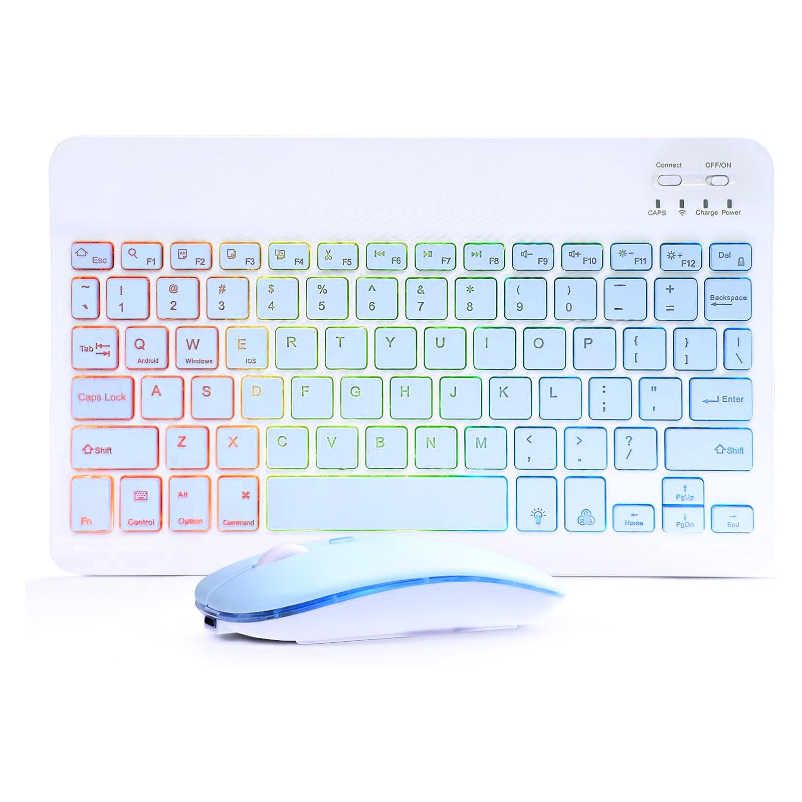 Bluetooth Keyboard and Mouse Combo Rechargeable Portable Wireless Keyboard Mouse Set for Apple iPad iPhone iOS 13 and Above Samsung Tablet Phone Smartphone Android Windows (10 inch Pink)