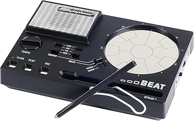 - The Stylophone BEAT is a pocket-sized drum machine that uses a touch-sensitive stylus to play, record, and mix drum & bass sounds. Make fun beats and quirky basslines anywhere with its battery-powered design, headphone socket, and built-in speaker, and get creative with handy features like click track, looping, transpose, and more.