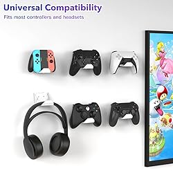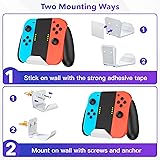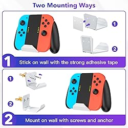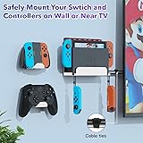 MOUNT YOUR SWITCH: This nintendo switch wall mount kit helps you store the switch, game cards, and Joy-con, freeing up valuable space on your desktop. You can install the switch next to or behind your TV to provide you with the best gaming experience on the big screen. The wall mount kit is compatible with Switch/Switch OLED 2 JOY-CON HOOKS & 2 CONTROLLER HOLDER: This switch wall mount kit comes with 2 controller wall mounts, and the switch wall mount has 2 extra hooks for the Joy-Con. Compatible with Joy-con, Switch Pro Controller, and Joy Con Comfort Grips 28 GAME CARD SOLTS: The switch wall mount kit has a slot for 28 game cards, You can put your frequently played games in this 28 game card slot so you can find them quickly the next time EASY TO INSTALL: You can install this wall mount quickly and easily, using only a screwdriver and 3 screws to secure the Switch wall mount to the wall. Double-sided adhesive installation is suitable for smooth walls, wait 24 hours after installation before use PACKAGE INCLUDES: 1 x switch wall mount, 2 x controller wall mount, 1x 28 Game Card Slots, 1 x screwdrivers, 3 x Screws, 3 x Expansion Screws, 1 x double-sided tape, 1 x installation manual