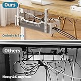 - 【No Drill Mounted】Cable management tray can be assembled in as little as 3 minutes or less-simply. Side clips easily clampe the edge of desk, pass through the holes on the sides, and secure excess cables with baskets. Desk cable management supports inward or outward installation to meet your needs in different scenarios, and provides you with great convenience when collecting and organizing wires. 【Sturdy and Beautiful】Cord management under desk is made of high-quality carbon steel and holds about 15 lbs. The wire basket has 2 holes on each side of the tray to enable your cables to pass freely. Cable baskets are suitable for desk thickness use from 0.4" to 2".