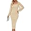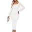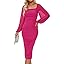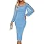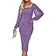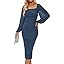 ZESICA Women's Sexy Ruched Bodycon Midi Dress Long Puff Sleeve Square Neck Backless Cocktail Party Wedding Dresses