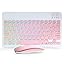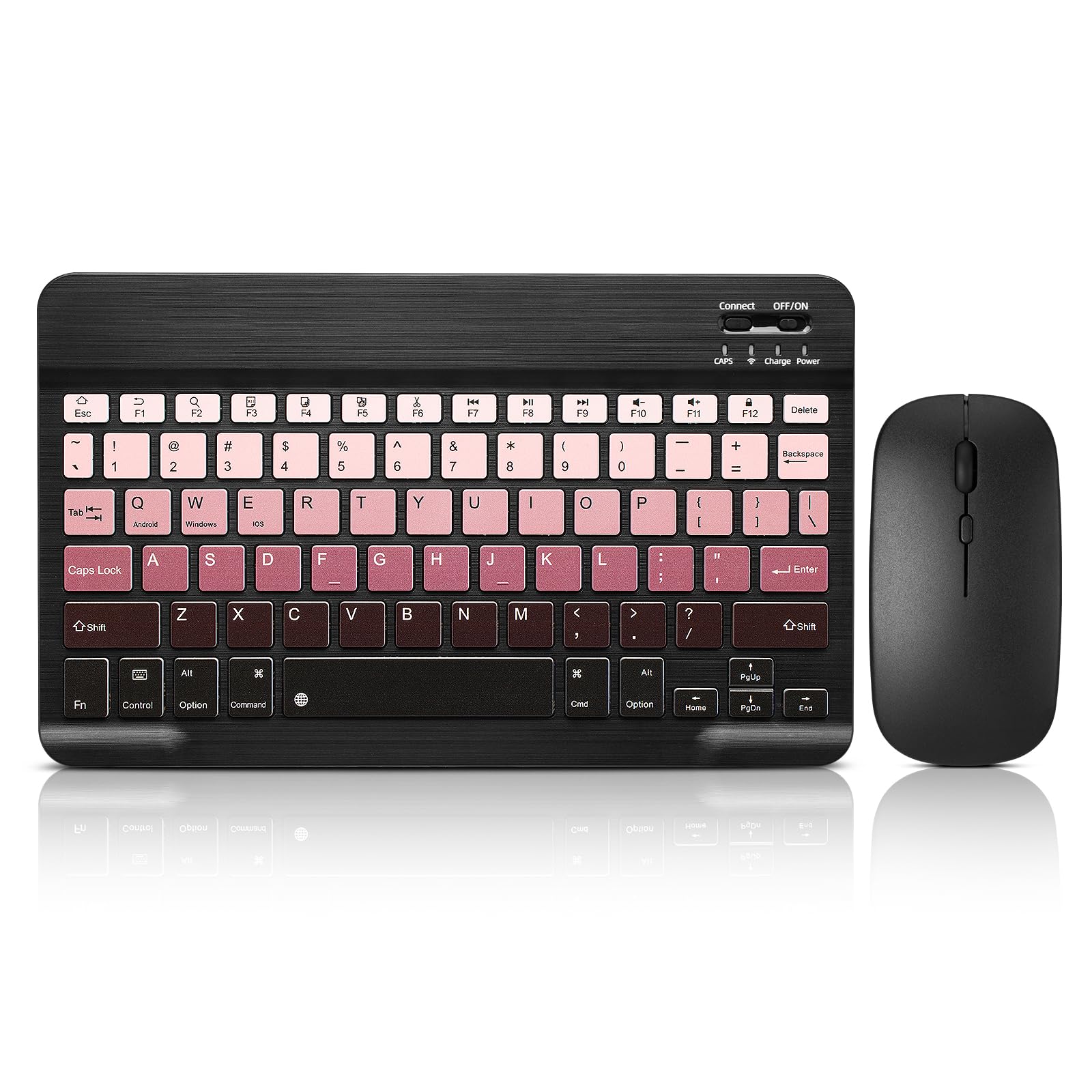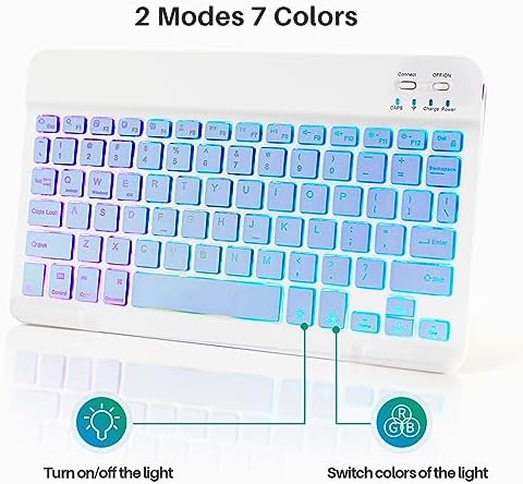 - 7-Color LED Backlit - This wiressless 7-color led backlit bluetooth keyboard and mouse adopts bluetooth wireless connection and scissor key structure,which bring you a perfect input experience,it has built in rechargeable polymeric lithium better and charging indicator,the keyboard will enter into sleeping mode if there is no action in 10 minutes,therefor it has a small comsumption and long battery life.