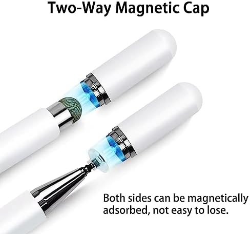 Stylus Pens for Touch Screens, 2 in 1 Magnetic Disc & Fiber Tip Stylus Pen for iPad with Magnetic Cap, Compatible with All Touch Screens - Free Replacement Disc Tips, White