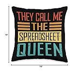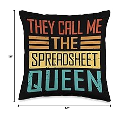 100% Polyester They Call Me The Spreadsheet Queen | Programming and Software Engineering is your passion? Perfect gift for IT teams all who love chemistry, science and tech wordplay or science nerds, chemistry majors, students and teachers. When you are a Coding Geek or Coder Nerd. Whether you love video games or reading books. It’s a great gift idea for IT teams, Helpdesk guys, Tech Support, Sysadmins, birthdays, Christmas or holidays. Perfect for men, women, boys, girls, mom, dad, father. 100% spun-polyester fabric Double-sided print Filled with 100% polyester and sewn closed Individually cut and sewn by hand Spot clean/dry clean only