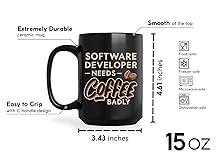 Programmer Coffee Mug 15oz Black -software developer needs coffee badly - Computer Science Tech Web Developer IT Database Programming Deging Coding Software