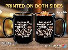 Programmer Coffee Mug 15oz Black -database administrator needs coffee badly - Computer Science Tech Web Developer IT Database Programming Deging Coding Software
