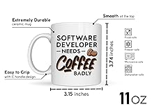 Programmer Coffee Mug 11oz White -software developer needs coffee badly - Computer Science Tech Web Developer IT Database Programming Deging Coding Software