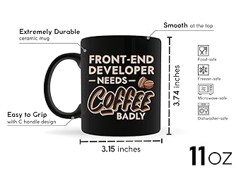 Programmer Coffee Mug 11oz Black -front-end developer needs coffee badly - Computer Science Tech Web Developer IT Database Programming Deging Coding Software