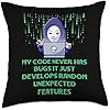 Web Developer Computer Programming My Code Develops Unexpected Features Professional Innovation Throw Pillow, 18x18, Multicolor