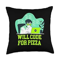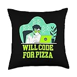 Web Designer Programmer Foodie Professional Coder Will Code for Pizza Web Developer Computer Programming Throw Pillow, 18x18, Multicolor
