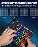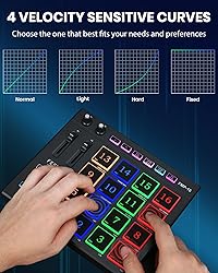 【Multifunctional MIDI Controller】The Fesley beat maker machine boasts powerful features essential for music creation and production.With versatile connectivity options, you can easily connect to a variety of devices including computers (Windows and macOS), tablets and mobile phones (Android and iOS) via a USB cable. It is an ideal choice for music production, live performance, sound design, real-time control, and more. 【Use Your Favorite DAW】The Fesley MPC seamlessly integrates with a variety of popular DAW software and applications, including Ableton Live, Pro Tools, Logic, Cubase, and more, allowing you to freely create, record, mix, improvise, and edit your musical ideas. This controller enables you to delve into the world of precise music production techniques, making your music more professional and modern. 【Streamlined Control】With 2 assignable knobs and faders, A&B buttons, the Fesley beat pad gives you complete control over your audio software, allowing you to focus on the creative process of recording and mixing music. The 2 assignable knobs can be used to adjust effects plugins and virtual instruments, allowing for precise sound shaping and manipulation. The 2 assignable faders are ideal for controlling the master output or mixing tracks together. The A and B buttons can be customized according to your needs. 【Limitless Creativity】The Fesley beat machine features 3 groups of beat pads, equivalent to 48 pads. Our provided editing software allows you to customize 7 different colors to identify your programmed content, making it easier for you to recognize and manage different instruments or composition elements during your creative process. This intuitive design helps you arrange music more efficiently while providing richer creative inspiration and expression. 【Enhanced Expression】Featuring 4 selectable velocity, you can easily control the volume, allowing you to express emotions and musicality through the intensity of your strikes, making your performance more realistic and dynamic. (Kind Reminder: The feature is operated by the editor, the editor can only configure the MIDI pad controller and does not include recording or composing music functions.) 【Flexibility and Customization】In addition to featuring note repeat and shift keys, users can customize settings for swing, tap tempo, transpose, and octave on the Fesley drum machine beat maker, enhancing the flexibility and diversity of music composition and performance. 【What's in the Package】Fesley MIDI pad controller×1, Standard USB Cable×1, USB to Type-C Adapter×1, 3.5mm to 5-pin MIDI Cable×1, User Manual×1.