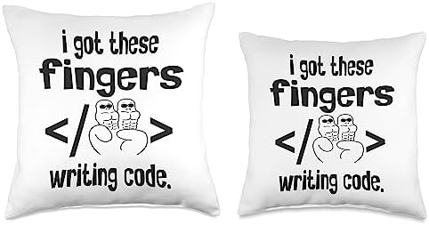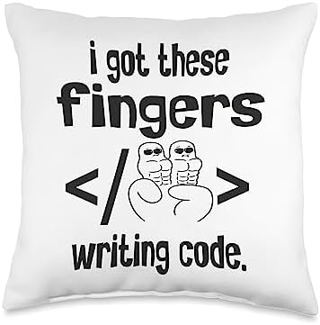 Funny Computer Software Programmer Coding Tee I Got These Fingers Writing Code Funny Computer Coder Throw Pillow, 16x16, Multicolor