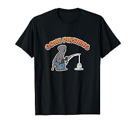 - Hacker sitting at an Ice Hole while fishing digital letters. With the quote "Gone phishing" written on it. Funny hacking design for every day. Do you like to hack and phishing data? Then get this funny hacking design for your wardrobe.!