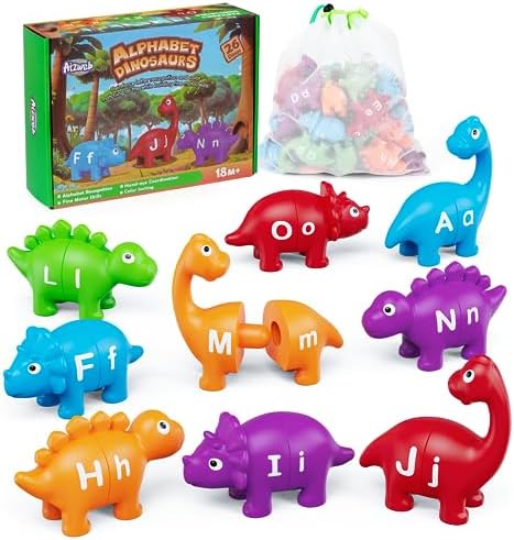 - 【ABC Learning for Toddlers】The Aizweb dinosaur alphabet matching set comes in a value pack with 26 letters on 26 dinos. The vibrant colors of this toddler learning toy easily capture kids' attention and stimulate the development of their visual perception skills. Ready for all kinds of preschool learning activities, this set makes a natural addition to toddler Montessori toys in classrooms, homeschooling aid, and daycare tool.
