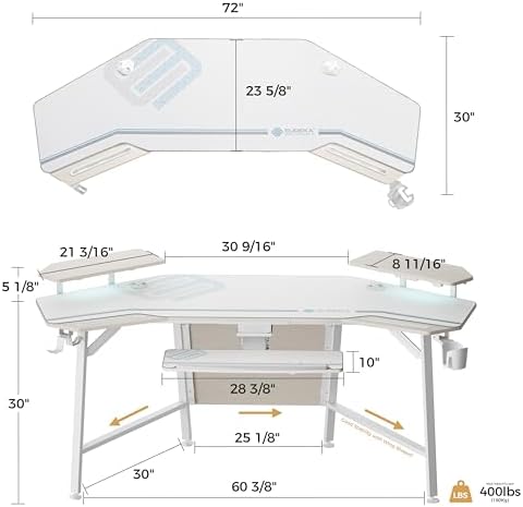 • Oversized Gaming Work Surface Upgrade your setup with this 72"W x 24"D x 30"H large gaming desk, built to support up to 400 lbs for all your gear.The ergonomic wing-shaped desktop provides extra space for monitors, gaming gear, and streaming equipment, while the smooth carbon fiber texture delivers a premium look and a comfortable, scratch-resistant surface for long hours of play or work. Perfect as a large computer desk, gaming workstation, or streaming table.