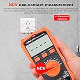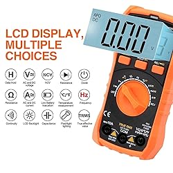 Versatile Digital Multimeter:Multimeter can be used to measure DCV,ACV,DCA,ACA,resistance, capacitance, inductance, diode, triode,continiuty test, temperature and frequecy, it is a portable and ideal tool for use. HD LCD Screen Disply: Max disply to 5999 (3 5/6 digital).auto polarity indication. easy to read with HD LCD Screen Disply. Pen Storage Design: The back of the instrument protective case has a pen storage and hanging hole design, which is easy to carry the pen for easy measurement. NCV non-contact measurement: The NCV induction voltage range is 48~220V, when the mater is gradually approached to the point to be detected, the AC voltage intensity is detected, the red indicator light of the meter flashes and buzzer emits a beep sound. Safe and Reliable Operation: The product is designed to meet the requirements of safety regulations CAT III 1000V and CAT III 600V.