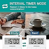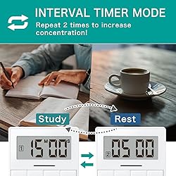 - Press the timer button to start countdown. The timer is pre-prepared with the frequently used time buttons, so just press the button. Easy and efficient operation without setting up. It comes with an interval mode that can be used for various occasions such as studying, sports, and more.
