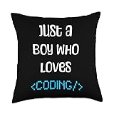 Tees for coding & computer science Just A Boy Who Loves Coding Computer Funny Throw Pillow, 18x18, Multicolor